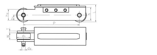 Chain no.Pitch P1(mm)Diameter of roller d1(mm)Diameter of pin d2(mm)Inner width of inner link b1(mm)Length of pin L(mm)Data of sidebarTensile strength Q(KN)